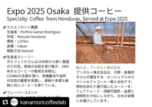 プンタルト直輸入のポルフィリオさんのコーヒーを、大阪万博のホンジュラス館にて試飲提供してくださいます!